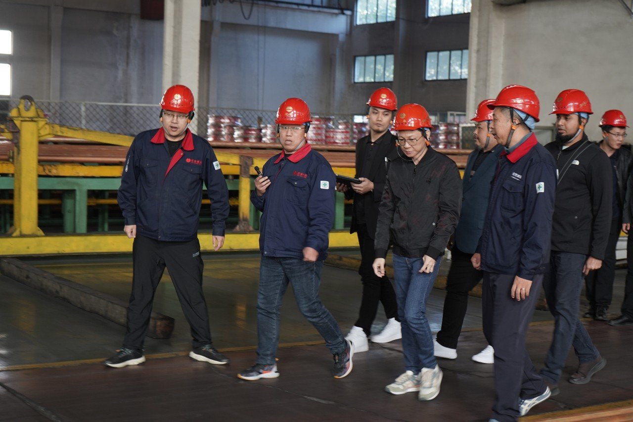 2023年11月8日,青島鑫光正鋼結(jié)構(gòu)有限公司領(lǐng)導攜馬來西亞政府訪問團到宏泰參觀考察。公司董事長兼總經(jīng)理李福鵬、總經(jīng)辦主任呂翠剛等人陪同其參觀了青島宏泰金屬制品有限公司及正在建設中的新車間。